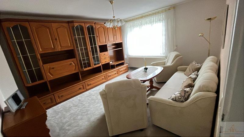 Die Küche ist mit einer Einbauküche samt Elektroherd, Mikrowelle, Geschirrspüler und Waschmaschine ausgestattet. Im Wohnzimmer sorgt eine gemütliche Couch zum Entspannen, ergänzt durch eine Anbauwand mit viel Stauraum, für ein rundum komfortables Wohngefühl.